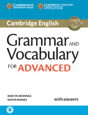 Grammar and Vocabulary reference and practice for the revised Cambridge English: Advanced (CAE) from 2015 Cambridge Grammar and Vocabulary for Advanced provides complete coverage of the grammar and vocabulary needed for the revised exams, and develops listening skills at the same time. It provides students with practice of exam tasks from the Reading and Use of English, Writing and Listening papers and contains helpful grammar explanations and glossary. It also includes useful tips on how to approach exam tasks and learn vocabulary.