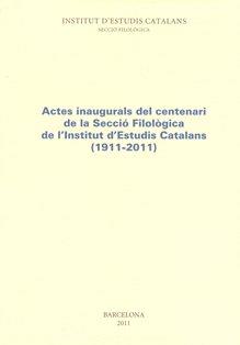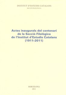• Actes inaugurals del centenari de la Secció Filològica de l'Institut d'Estudis Catalans (1911-2011)