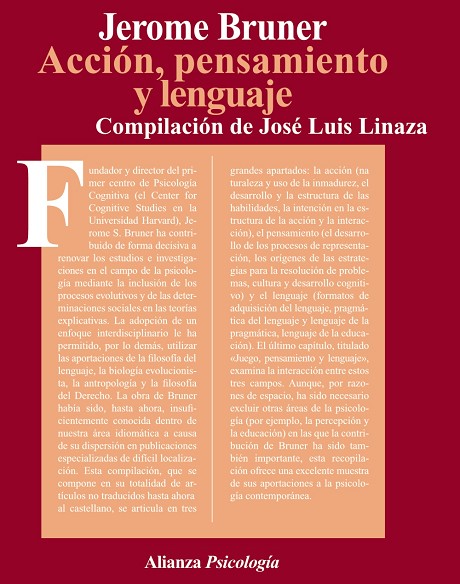 Bruner, Jerome S.;Linaza, José Luis ALIANZA EDITORIAL Ref. 9788420665023 Ver otros productos de la misma colección Ver otros productos del mismo autor Dimensiones: 230 x 175 x 13 cm Peso: 405 gr