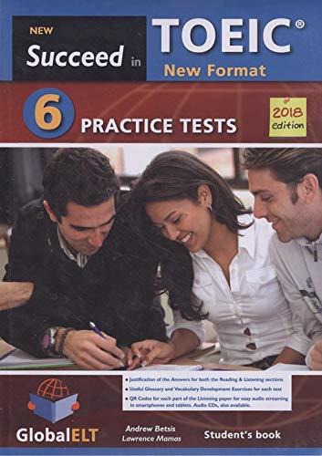 Edición de autoaprendizaje disponible con 6 examenes del nuevo formato TOEIC del 2018. Estas pruebas han sido diseñadas para proporcionar a los estudiantes las estrategias que necesitan para familiarizarse con el nuevo formato de las tareas del examen TOEIC. Las grabaciones reflejan una variedad de acentos, desde, en su mayoría, estadounidenses y canadienses, hasta británicos, irlandeses, galeses, escoceses y australianos. Incluye audioscrips, clave de respuestas y audio MP3-CD.