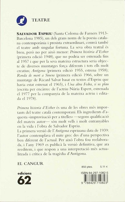 Espriu, Salvador EDICIONS 62 Ref. 9788429710823 Ver otros productos del mismo autor Ancho: 140 cm Largo: 180 cm Peso: 96 gr