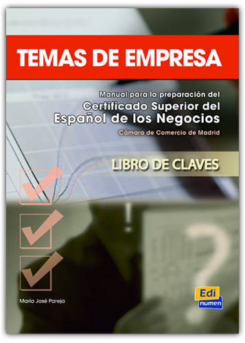 Temas de empresa - Libro de Claves Manual para la preparación del Certificado Superior de Español de los Negocios y para estudiantes que quieren desarrollar y mejorar el español de los negocios. En este Libro de Claves se incluyen las respuestas a las actividades del Libro del alumno y las sugerencias y explicaciones adicionales para el aula de gran utilidad para el profesor. Material que ha sido confeccionado para la obtención de Certificado y que antes de publicar se ha comprobado su eficacia en cursos específicos. Prepara al estudiante para la prueba escrita (comprensión lectora, los conocimientos específicos y la producción de textos escritos) y la prueba oral. Ideal para estudiantes que trabajan en España o en una multinacional española en su país, ejecutivos o personas interesadas en el español de los negocios. El estudiante, junto con el Libro del alumno, puede trabajar de manera autodidacta en la preparación del examen. También destinado a alumnos que quieren ingresar en universidades españolas o hispanoamericanas. En el material del alumno se incluye un modelo de examen para que los estudiantes se familiaricen con él y verifiquen sus conocimientos.