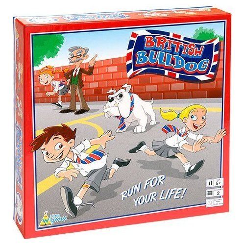 Britain's favourite playground game as a board game! Can the Runners make it safely across the playground avoiding the Bulldog? The Teachers can help, but if the Runners get caught it's "British Bulldog"! Contents: * 1 x playing board * 1 x Bulldog piece * 4 x Runner pieces * 1 x number die * 1 x direction die * 1 x sheet of 5 stickers * 1 x instruction leaflet Made in the UK and Poland from 100% recycled board. --- "RUN FOR YOUR LIFE!" ---