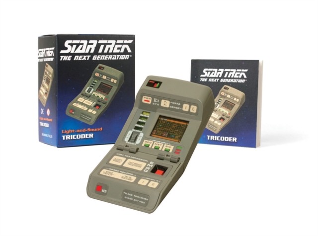 Star Trek fans and collectors will love this one-of-a-kind, mini-size collectible tricorder. The tricorder is a multifunction handheld device used for sensor scanning and data analysis. Kit includes:* Light-up tricorder with sound* Display base* 48-page book on the history of tricorders and full-color photos