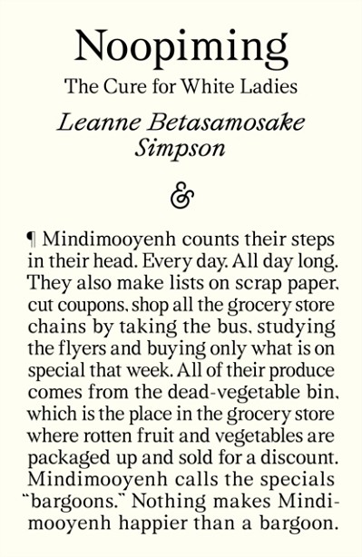 Shortlisted for the Dublin Literary AwardShortlisted for the Governor General's Literary Award for FictionShortlisted for the ReLit Award for NovelNoopiming is Anishinaabemowin for ‘in the bush.’ In it, Simpson and a cast of seven – Akiwenzii, the old man; Ninaatig, the maple tree; Mindimooyenh, the...