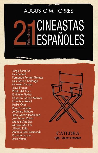 Durante los años setenta, ochenta y noventa del siglo XX, e incluso en la primera década del xxi, el escritor, realizador y productor Augusto M. Torres dialoga con destacados cineastas mundiales. En 21 cineastas españoles (entrevistas) reúne una variada selección con directores, guionistas, productores, actores y técnicos para construir un peculiar, original y coherente dibujo del cine español de la segunda mitad del siglo XX. Desde el olvidado de la más dura posguerra y el interesante de los años de la Transición hasta el nacido de la política cinematográfica de los socialistas. Una visión alejada de lo tradicional, lo habitual, lo siempre considerado políticamente correcto, que suele aparecer reflejado en las historias del cine. Un conjunto de entrevistas donde diversos profesionales hablan de su vida, sus películas y su relación con un medio tan específico como el cinematográfico. Realizadas en momentos especiales de las respectivas carreras, están prologadas por originales retratos y trayectorias de cada uno, además de una sucesión de consideraciones sobre las relaciones del entrevistador con el entrevistado y de estos con un cine tan específico como es el español durante esas décadas.