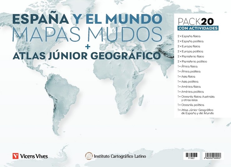 • PACK 20 MAPAS MUDOS CON ACTIVIDADES Y ATLAS JÚNIOR GEOGRÁFICO DE ESPAÑA Y DEL MUNDO